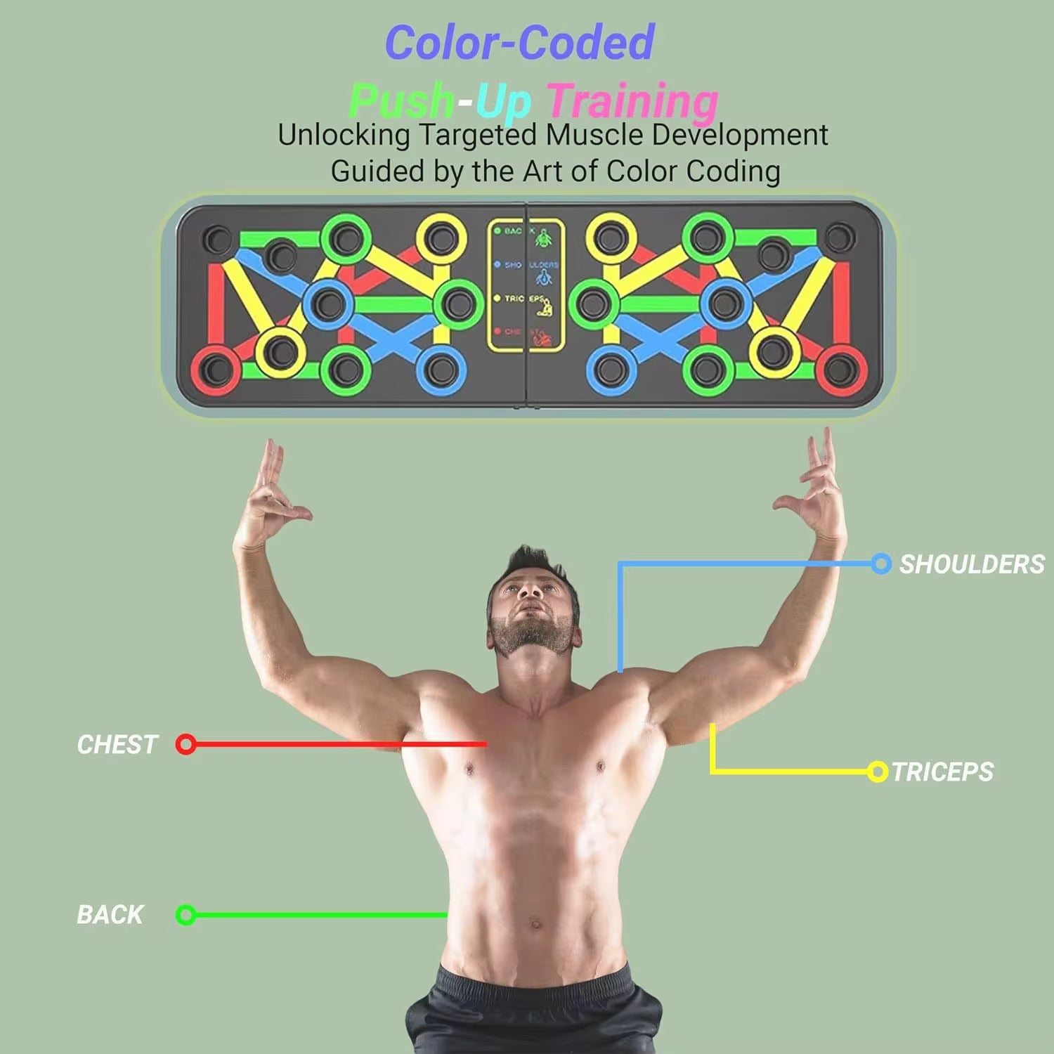 - Code couleur : la planche push-up est un système d'entraînement innovant à code couleur qui renforce et sculpte l'ensemble des muscles du haut du corps (poitrine, épaules, dos et triceps)